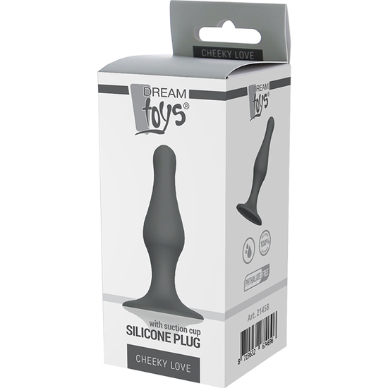 CHEEKY LOVE GREY PLUG WITH SUCTION CUP. Este enchufe está hecho de silicona hipoalergénica y no porosa, y tiene una punta afilada para una fácil inserción. El eje es más ancho que la punta, lo que le dará sensaciones emocionantes al insertar. Debido a la base de succión, el enchufe se adhiere firmemente a cualquier superficie lisa. Plug anal hecho de silicona de grado médico Punta afilada para una fácil inserción Base de succión se adhiere firmemente a cualquier superficie lisa No poroso y hipoalergénico Lave con jabón y agua antes y después de cada uso Diámetro: 3,0 cm Longitud: 10,3 cm. Medidas de la caja: 6 x 15 x 6. Longitud del producto en cm.: 10,3. Color: Gris. Material: Silicone