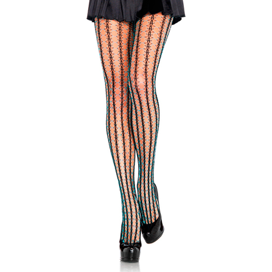LEG AVENUE THORN NET CONTRAST COLOR BLACK-NEON BLUE.