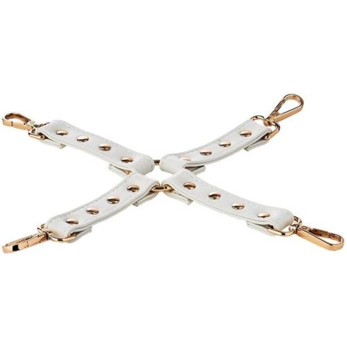 BLAZE ELITE HOGTIE WHITE. Esta hog tie de la colección Blaze Elite está hecha de cuero artificial blanco con detalles metálicos de color dorado que la hacen lucir muy elegante. Mejora tu juego de bondage con una hog tie para sujetar los brazos y las piernas de tu sumiso. Las 4 ganchos mosquetón se pueden usar para conectar cadenas, cuerdas, esposas, tobilleras y otros accesorios de bondage, por ejemplo, las tobilleras y muñequeras a juego de la colección Blaze Elite. Hog tieHecho de cuero artificial blancoCon detalles metálicos de color dorado, libre de níquelCon 4 ganchos de broche. Medidas de la caja: 20 x 9 x 5. Longitud del producto en cm.: 28,5. Color: Blanco. Material: PU / Metal