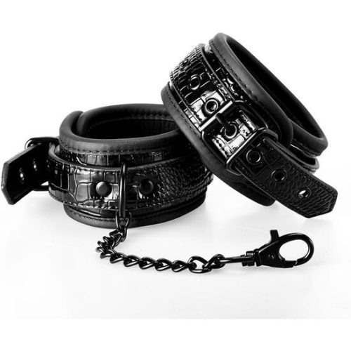 BLAZE HANDCUFF CROCO BLACK. Un par de elegantes esposas hechas de un material negro elegante y brillante con un diseño de cuero croco. Tienen todos los hardware de color negro sin níquel y están forrados con un material suave y duradero de neopreno para un juego sexy y cómodo. Las esposas para la muñeca son totalmente ajustables con hebillas de estilo cinturón sencillas. Una cadena de 10 cm de largo mantiene las esposas juntas. La cadena es desmontable por un lado con un gancho mosquetón. Es posible conectar más cadenas o ganchos de cuerda o pesos adicionales. Elegantes esposas Ajustables completamente a través de la sencilla hebilla de estilo cinturón Mantenidas juntas por una cadena negra a la que puedes conectar fácilmente cuerda, ganchos o pesos Estas duraderas esposas cuentan con todos los hardware de color negro sin níquel y están forradas con un material suave y duradero de neopreno para un juego sexy y cómodo.. Medidas de la caja: 21 x 12 x 6,5. Longitud del producto en cm.: 34. Color: Negro. Material: Metal / Neoprene / PVC