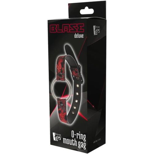 BLAZE DELUXE O-RING MOUTH GAG. Mordaza de anillo de metal para juegos de bondage. El anillo, con un diámetro de 5,5 cm, facilita la respiración y la fellatio es posible. La correa para el cuello tiene una elegante decoración bordada y se ajusta completamente con el cierre de hebilla de metal. Anillo de metal, diámetro 5,5 cm Correa para el cuello ajustable Hebilla de metal para cierre. Medidas de la caja: 5,5 x 7,5 x 23,5. Longitud del producto en cm.: 64. Color: Negro. Material: Neoprene / Iron / PVC / Nylon / Polyester