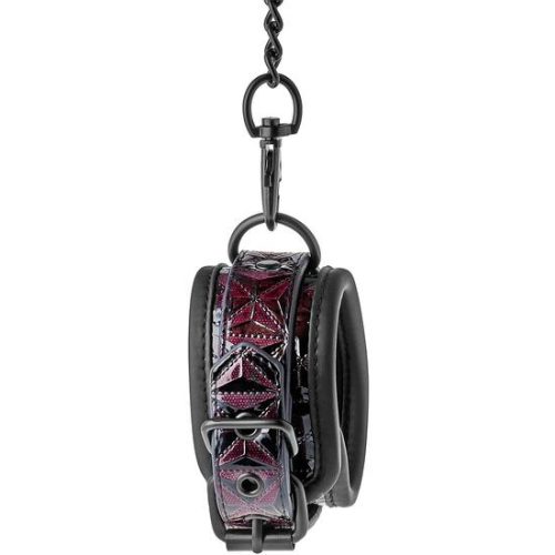 BLAZE ANKLE CUFF PURPLE. Un par de elegantes esposas de tobillo hechas de material de aspecto de cuero con un diseño estampado negro y púrpura elegante y brillante. Tienen todos los herrajes de níquel negro y están forrados con un material suave y duradero de neopreno para un juego sexy y cómodo. Las esposas de tobillo son totalmente ajustables con los simples hebillas de estilo cinturón. Una cadena de 12 cm de largo mantiene las esposas juntas. La cadena es desmontable por un lado con un gancho mosquetón. Es posible conectar más cadenas o ganchos de cuerda o pesos adicionales. Estilosas esposas Totalmente ajustable con la simple hebilla de estilo cinturón Unidas por una cadena negra que puedes conectar fácilmente con cuerda, ganchos o pesos Estas duraderas esposas cuentan con todos los herrajes de níquel negro y están forradas con un material suave y duradero de neopreno para un juego sexy y cómodo.. Medidas de la caja: 6,5 x 12 x 21. Longitud del producto en cm.: 40. Color: Púrpura. Material: Metal / Neoprene / PVC / PU