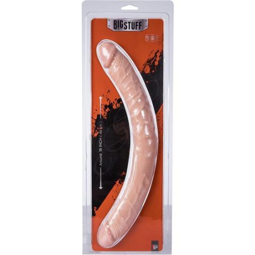 BIGSTUFF 18INCH DOUBLE DONG. Este doble dong extra largo tiene una forma de pene en ambos lados, cada uno con una glándula distinta, venas y una piel suave. Un doble dong es perfecto para la estimulación simultánea y el doble placer, y es adecuado para uso vaginal y anal. Hecho de PVC no tóxico que no huele, hipoalergénico, libre de ftalatos y fácil de limpiar. Realista doble dongDos lados con forma de peneDiseñado para estimulación simultánea y doble placerExtra largo para un placer extraNo tóxico, sin olorLibre de ftalatos. Medidas de la caja: 51 x 18,5 x 5. Longitud del producto en cm.: 40. Color: Carne. Material: PVC