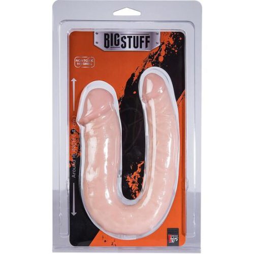 BIGSTUFF 16INCH DOUBLE DONG. Este doble dong curvado tiene una forma de pene en ambos lados, cada uno con una glándula distinta, venas y una piel suave. Este dong tiene un eje más grueso en un lado, adecuado para uso vaginal, y un eje más delgado en el otro lado, que es perfecto para uso anal. Un doble dong es excelente para estimulación simultánea y doble placer. Hecho de PVC no tóxico que no huele, hipoalergénico, libre de ftalatos y fácil de limpiar. Doble dongDos extremos con forma fálicaLongitud: 40,6 cmDiámetro: 4,5 y 3,5 cmEje más grueso para masaje de la vaginaEl eje más delgado es perfecto para inserción analNo tóxico, sin olorLibre de ftalatos. Medidas de la caja: 30,5 x 18 x 4. Longitud del producto en cm.: 20. Color: Carne. Material: PVC