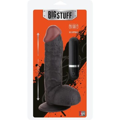 BIGSTUFF 7.5INCH BLACK. Un consolador negro realista con un escroto firme, que es una empuñadura perfecta para la masturbación o el juego de pareja. El eje tiene venas distintas, lo que hace que la lubricación se adhiera más tiempo al consolador y para un aspecto, tacto y experiencia realistas. Gracias a la fuerte base de ventosa, se mantendrá firmemente en su posición en cualquier superficie lisa y plana, permitiendo la masturbación sin manos. Hecho de PVC no tóxico que no huele, fácil de limpiar y hipoalergénico. Las 10 potentes vibraciones silenciosas de velocidad múltiple se pueden controlar con el controlador de fácil uso con cable. Requiere 2 pilas AAA, no incluidas. Consolador realistaBase de succión fuerteFácil de limpiar y hipoalergénico10 vibraciones de velocidad múltipleEl controlador requiere 2 pilas AAA, no incluidas.. Medidas de la caja: 33,5 x 18,5 x 7. Longitud del producto en cm.: 22,5. Color: Negro. Material: PVC